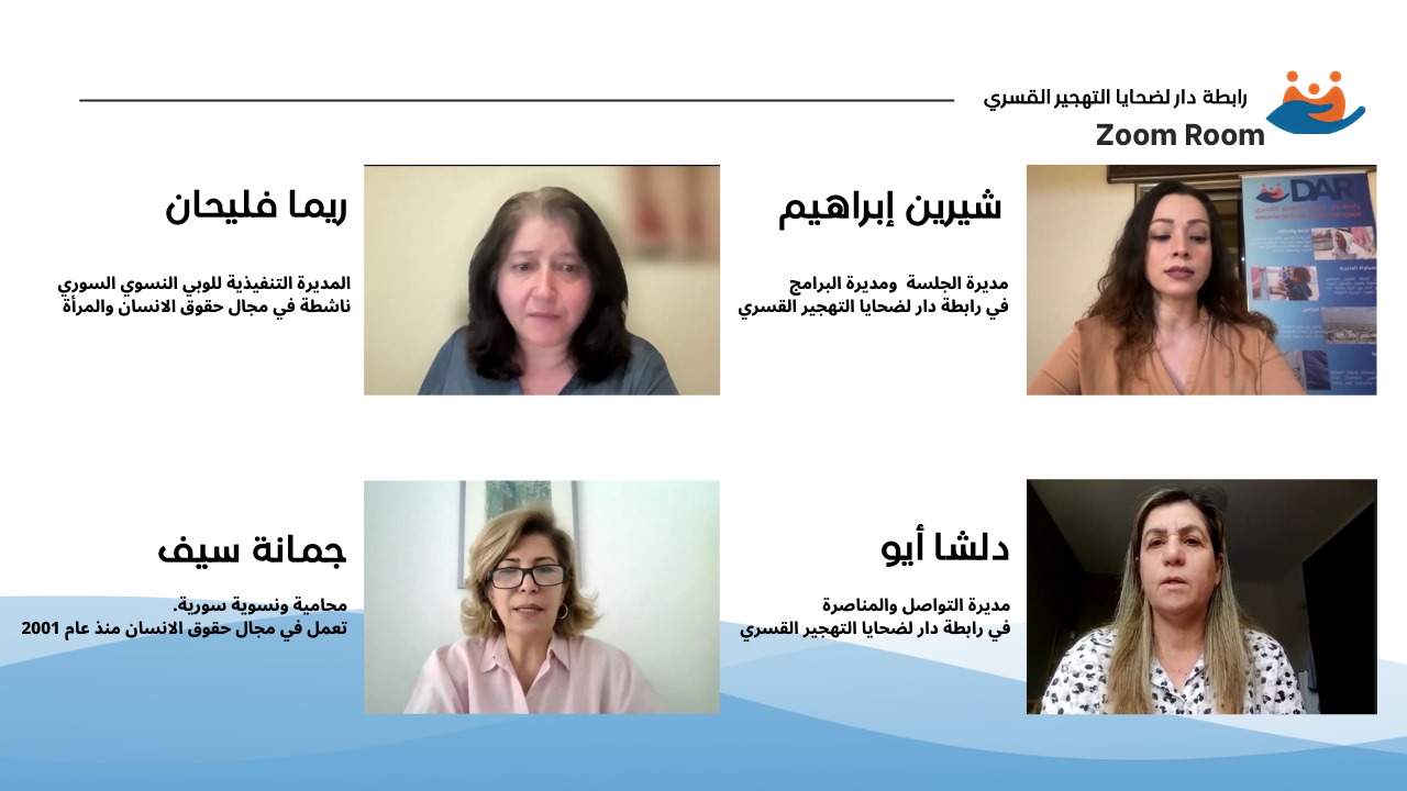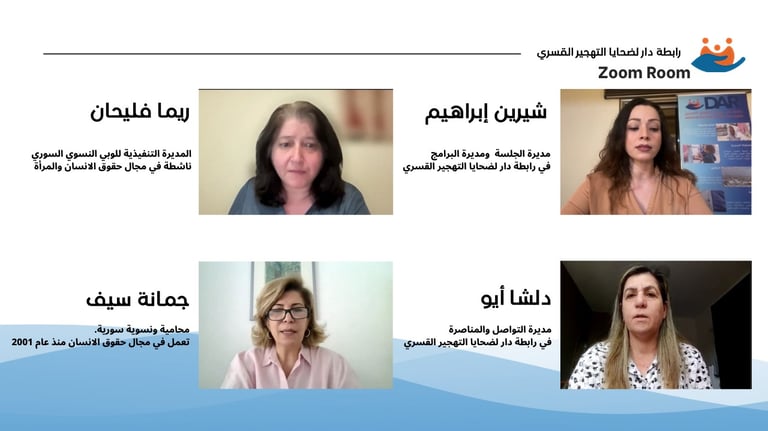 رابطة دار لضحايا التهجير القسري تنظم جلسة نقاشية عبر زوم حول تقرير اللوبي النسوي "لم نودع أحداً"